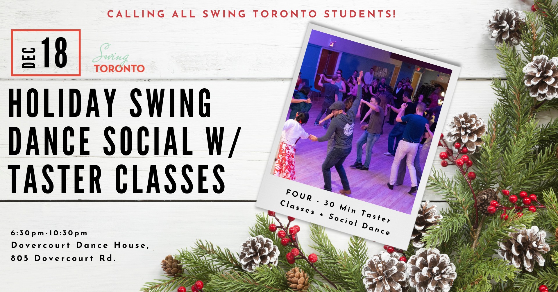 Swing Toronto presents a Yule/Holiday Swing Dance Social.
